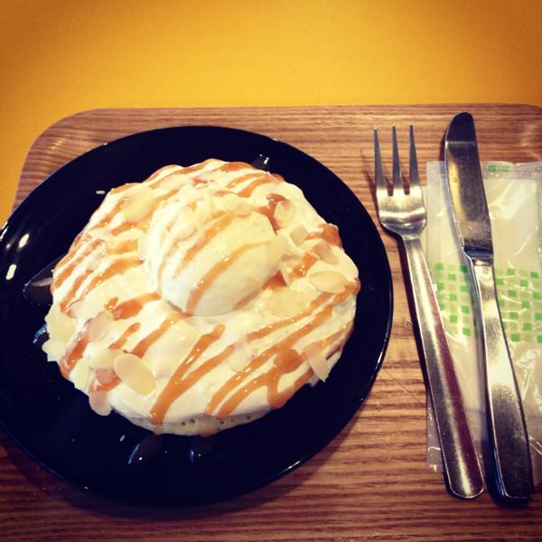 ルミネのハワイアンカフェ。パンケーキ!!アーモンドこりこりパンケーキです!