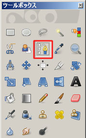 左側に「ツールボックス」のウインドウがあると思うので、その中から、ペンの先から曲線が出てるアイコンをクリックします(赤枠の部分)。