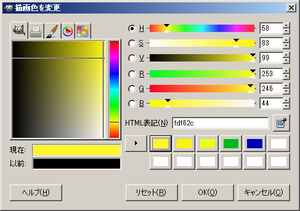 描画色の変更画面。右側に見えるグラデーション枠をクリックしつつ、好きな色を選択してください。