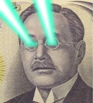 目からビームを撃ちつつ、頭でビームを跳ね返すベースボールの使者、正岡子規大先生。