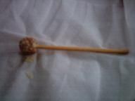 ②これにハチミツをとろ~りして、ココアミルクをかける(茶こしを使うと、きれいにできるぞ!!)
