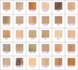 ナラ:木目が美しいことと堅さが十分であることから家具用材として重宝されている。虎斑(とらふ)という模様があるものが本来高級品だが、気持ち悪いと言う人もいる。
