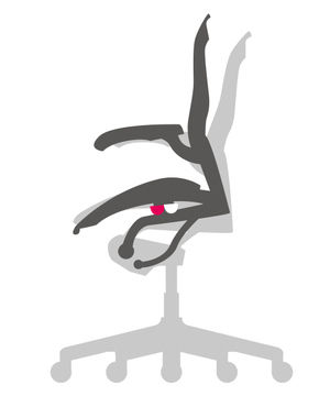 前傾もできるリクライニング機能って、最初はなんだそりゃ?と思っていたが、これがポスチャーフィットと組み合わせるとなかなかによい感じである。作業に集中してくると、多少カラダが前のめりになることもある。そういった際に前傾姿勢がとれることで、通常より太ももの裏辺りの圧迫感がなくなるのと、前傾しているにも係わらず腰と背筋のサポートもできるのである。