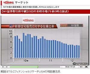 NY株式市場は、高値警戒感が依然強い中で、ダウは4日続落。今月最大の下げ幅でした。ダウは115ドル安1万3,057ドル、ナスダックは20ポイント安の3,053。セントルイス連銀のブラード総裁は「FOMC議事録は少し前のものだ」と述べ、きのう膨らんだ緩和期待に冷や水を浴びせたとの見方もありますが、その