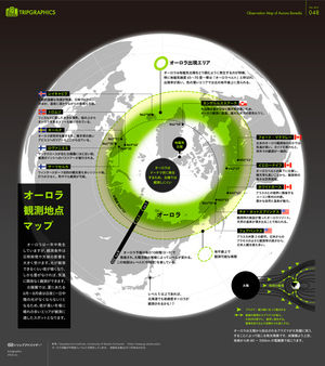 場所;オーロラが最も現れやすい場所としては地磁気緯度65~70度に沿った周辺地域