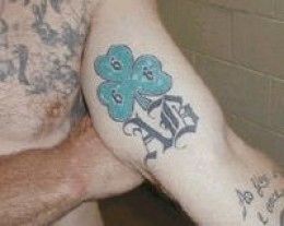 アイリッシュ系を意味する三つ葉のクローバー「Shamrock」と白人至上主義者の証「WHITE PRIDE」の文字。