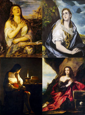 “罪の女(つみのおんな)は日本語で定着した言葉ではないが、英語で the Sinner と大文字で書くと、「悔悛した罪の女」、マグダラのマリアの異名となる。単なる罪人(つみびと)ではなく女性の、とくに性的不品行に結びつけられ、娼婦をも意味する。由来はカトリック教会において、ルカによる福音書に登場する「罪深い女」がマグダラのマリアと同一視されたことによる。”