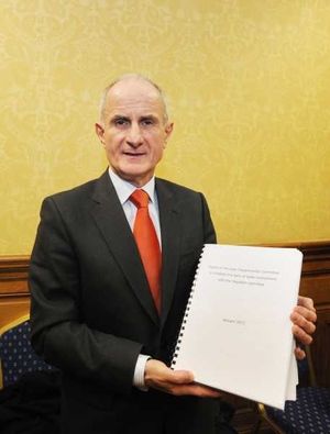 Martin McAleese in Iveagh House, Dublin, this afternoon with his report investigating state involvement in the Magdalene Laundries between 1922 and 1996.