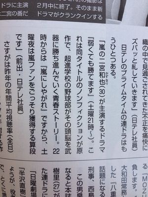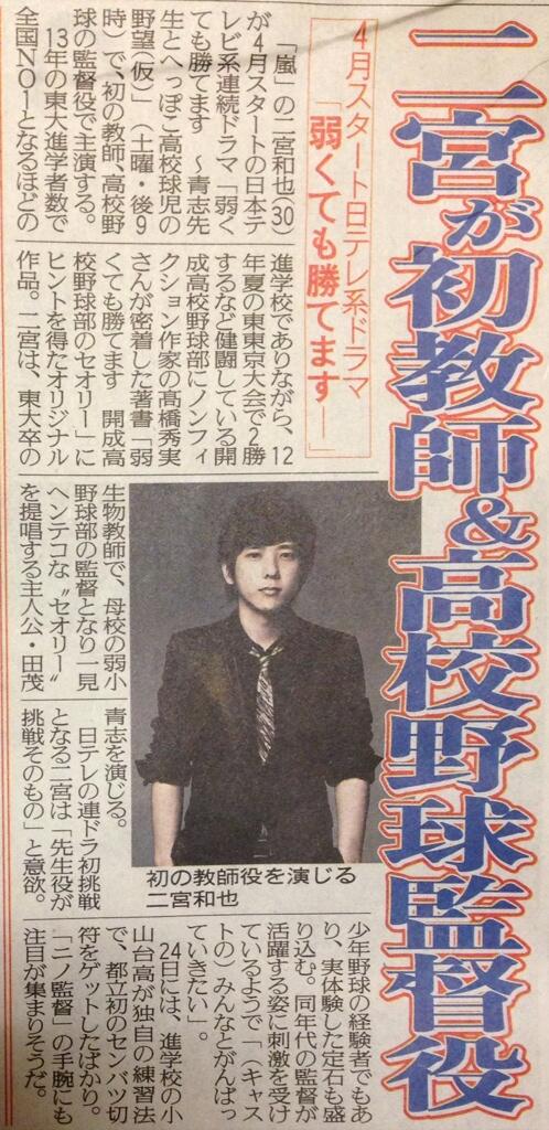 Twitter / khheat: 「嵐の二宮和也(かずなり)(30)が主演するドラマ『弱くても …
