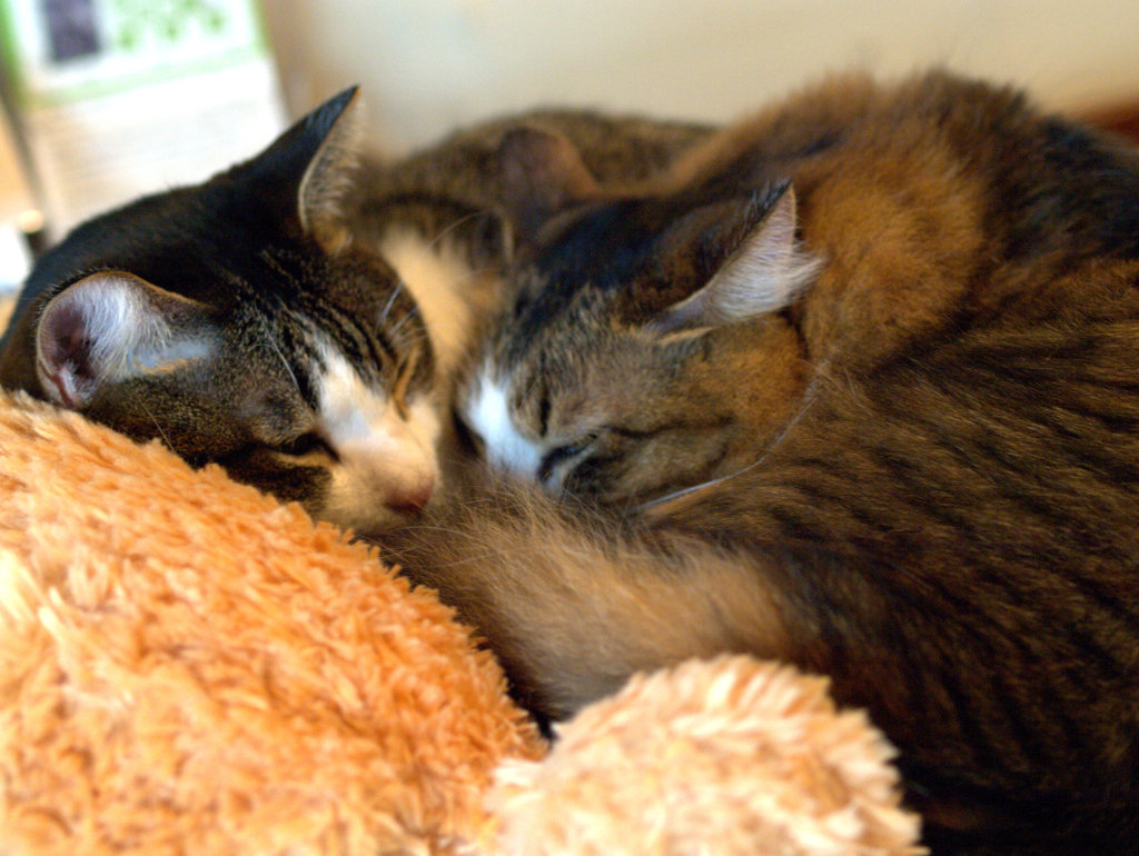 猫同士が仲良くグルーミングし合ったり、抱き合って眠っている姿を見られることは、至福の幸せ。