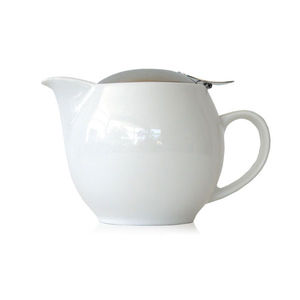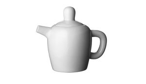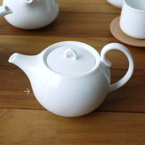 こちらはまんまるのフォルムとねずみの尻尾のような取っ手が特徴的な白磁のティーポットです。