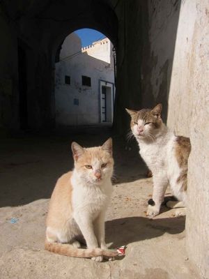 チュニジアの町を歩いていると、そこらじゅうに猫がいる。