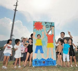 地元の小学生たちが作った「あつさ日本一!41度」の看板