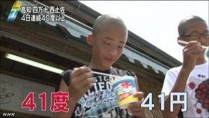 かき氷を食べていた地元の中学生は「暑いです。かき氷41円は安くてうれしいです。暑さ日本一を自慢したいです」と話していました。