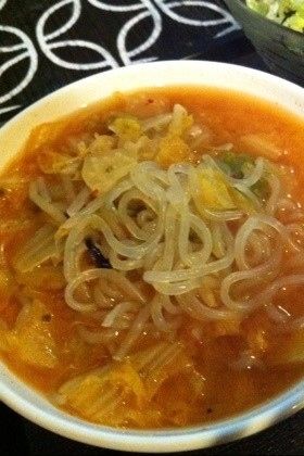 白滝で味噌キムチスープ