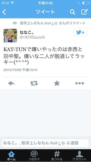 てかパーナもしっくも大人しくしとけよwwwwKAT-TUNのことに、しかもこんな時に余計な口出しするからwwwwそっとしといたれよwww今なんて何ゆったってハイフンさんの気に障んねんからww