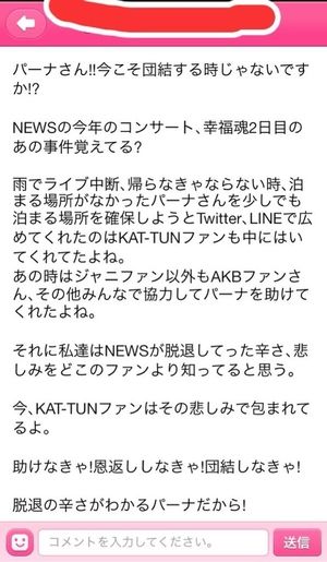 「パーナが団結して、KAT-TUNとKAT-TUNファンを応援」とか…