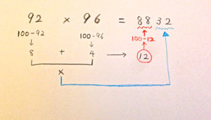 Step4: Step3ででた数字を100から引きます。100-12=88 この数字が答えの左側になります。