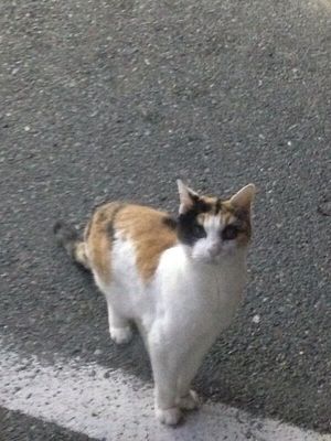 三芳のデイリーヤマザキのところに迷い猫っぽい猫がいた( ´・_・`)首輪してるから飼い猫だよね…とりあえず