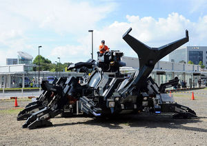全長11メートル、全高3.6メートル、重量17トンと昆虫界の王様であるカブトムシさながらの巨大仕様。2機のディーゼルエンジンを動力源とし、巧みに6本の足を動かしながら歩行(時速4km)