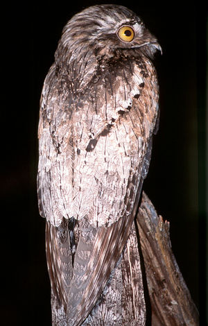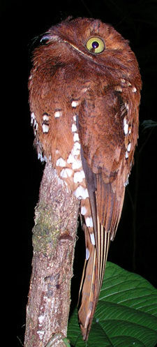夜行性。飛ぶ昆虫を狙って枝から飛び立ち空中で捕食する「ヒタキ型給餌」をする。