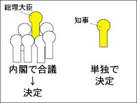 知事や市長は違います。彼らは都道府県や市の行政職員の最高責任者であり、法令上ひとりですべてのことを決裁し、決定することができます。都道府県や市町村のなかでは、彼らは内閣総理大臣よりも大きな力を持っているといえるのです。