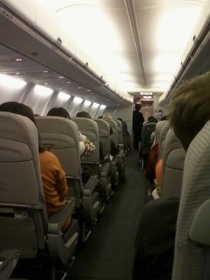 諦めきれずに成田でキャンセル待ちしてたらようやく乗れた。