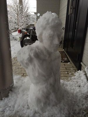 大雪で雪だるま職人が大挙して、あちこちで雪まつりが始まっているようです。