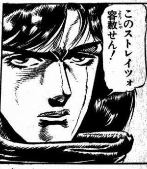「おれの精神テンションは今! 貧民時代に戻っているッ! 父がきさまらのワナに殺されたあの当時にだッ! 冷酷! 残忍! そのおれがきさまを倒すぜッ」
