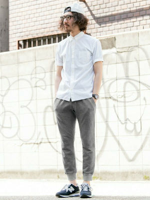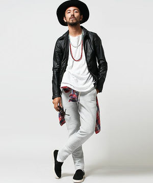 スウェットパンツを主体に、カーディガンを合わせたラフなスタイル。カーディガンにはラペルがついているので、JKTの様なきちんとした印象もプラスできます。リラックスしたスタイリングはアイテムチョイスでメリハリをつけるのがポイントです。
