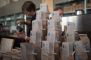 サンフランシスコで大変人気のあるコーヒーショップで、“Apple of coffee”つまり、コーヒー界のAppleと言われている。クラリネット奏者だったジェームス・フリーマン(James Freeman)氏がその道を諦めた時に、彼のもう一つの情熱であるコーヒー、それも本当に美味しいコーヒーを作ろうと決心し2002年8月に自宅のガレージで始めたのがブルーボトルコーヒーである。