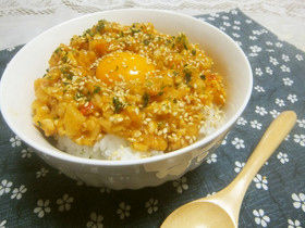 ジャージャー麺の丼バージョン!?甜麺醤がなかったからコチュジャンと豆板醤で味付け♪刻んで炒めるだけだから簡単&時短!!