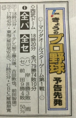 プロ野球オールスター戦の放送が…