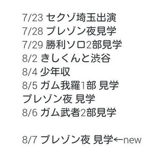 7/28夜PZ 8/6ガムシャラ2部 8/11しょり魂2部