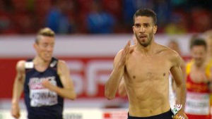 14日に行われた欧州陸上選手権の男子3000メートル障害決勝で、フランスのマイディーヌ・メキシベナバがゴールを前にランニングシャツを脱いだため、金メダルを剥奪された。