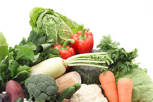 ブロッコリー、ピーマン、えんどうなどの緑黄色野菜。