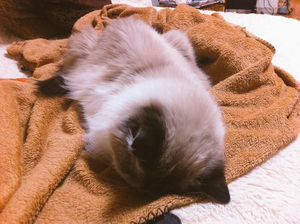 年賀状用にうちの猫に着物を着てもらって和装してもらったんだが・・・このまま床でグースカ眠り始めて写真が全然撮れないww仕方がないので起こさないよう着物を脱がして横で一緒に寝る。鼻息がピーって私の頬に当たって可愛い。 pic.twitter.com/hxqWsvNUbd