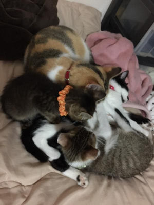 みな可愛いです。”@Fruits_of_Lotus: @TrinityNYC うちのねこたちも全員拾いっ子、昨年おじいちゃんねこを老衰で見送り今はおばあちゃん・女王様・小僧の3猫態勢でお布団警備員です(画像の白茶ブチがおじいちゃん) pic.twitter.com/6sZVAoCzuH“