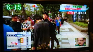 す・またんで心斎橋のアップルストアの中継をしようとしていたら、放送開始前にスタッフが駆け込んできて「想定外のことになってます、中継中止しますか?!」って騒ぎになったらしい……