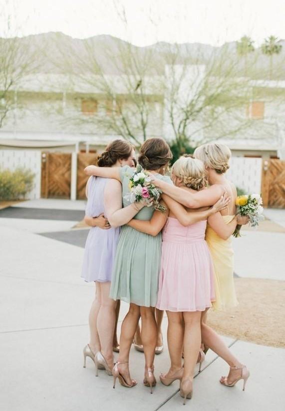 おそろいじゃなくって、同じパステルトーンでカラーを違うものにしても。その場合は、形をそろえると雰囲気がでます♥