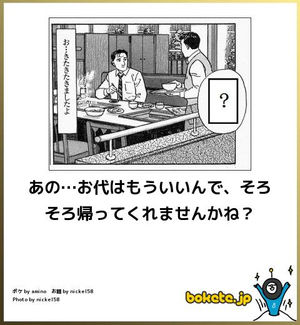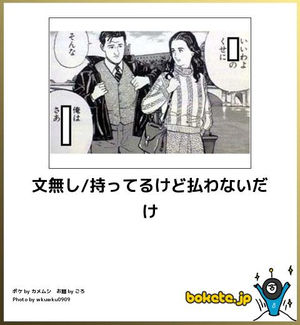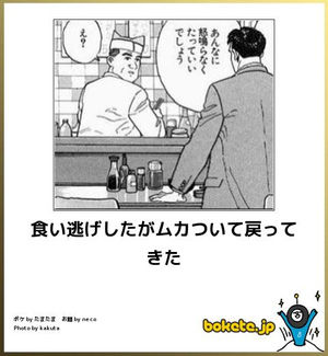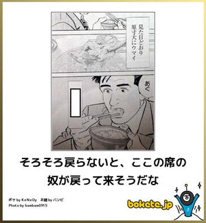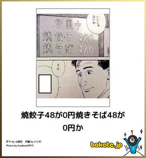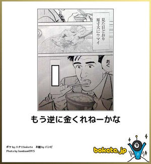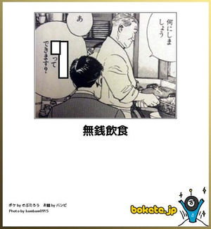 2014年頃から、写真で一言ボケるウェブサービス「ボケて(bokete)」において、主人公が無銭飲食の常習犯であるかのような印象を与えるボケが多数投稿され問題となっている。