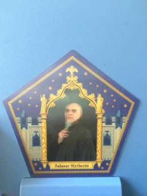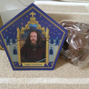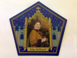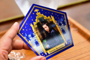 蛙チョコレートには1個につき1枚、「有名魔女・魔法使いカード」がおまけでついていて、古今東西の有名な魔法使いの写真またはイラストと、その簡単な経歴が記されている。