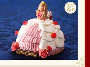 バラの香りと花びらをあしらい、聖夜を彩る華やかなケーキ。クッキー生地とホワイトチョコレートでコーティングしたフィアンティーヌを敷き詰め、口どけの良いスポンジにバラの花から抽出したエキスが入ったジュレと苺をサンドし、バラクリームとホイップクリームをコーティングしてカラードレス風に仕上げ、ベルローズの花びらをあしらったこちらもクリスマスにぴったりのケーキです。