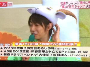 羊帽子かわいいー!かぶってる嵐さんもかわ!!やぎもかわ!!←私の干支を相葉さんがーー。(ちょっと角が重いのかな?)