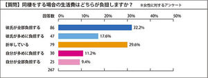 多くのカップルは、どちらか一方が多めに負担している様です。