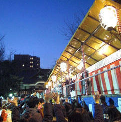 15:00~16:20境内特設舞台にて年男が3回にわけ て豆まき
