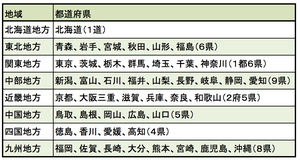 8地方は、明治以降の都道府県単位でまとめられており、以下の区分となっている。