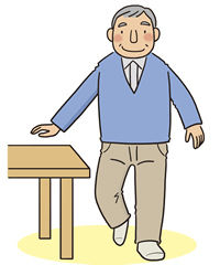 ロコモーショントレーニング (ロコトレ)2009 ■ 開眼片脚立ち ■ スクワット ■ その他のロコトレ 開眼片脚立ち ●転倒しないように、必ずつかまるものがある場所で行いましょう。 床に着かない程度に 片足を上げます。 左右1分間ずつ、 1日3回行いましょう。 支えが必要な人は、医師と相談して机や手に指をついて行います。 机に両手をついて行います。 指をついただけでもできる人は、 机に…