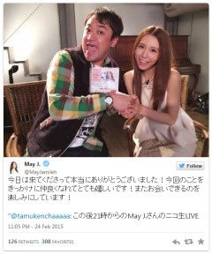 ●24日、May J.のニューシングル『ReBirth』の発売を記念した、ニコニコ生放送で、たむらけんじさんがゲスト出演