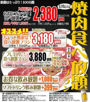 炭火苑の名作17品≪90分食べ放題≫満足コース 2980円!